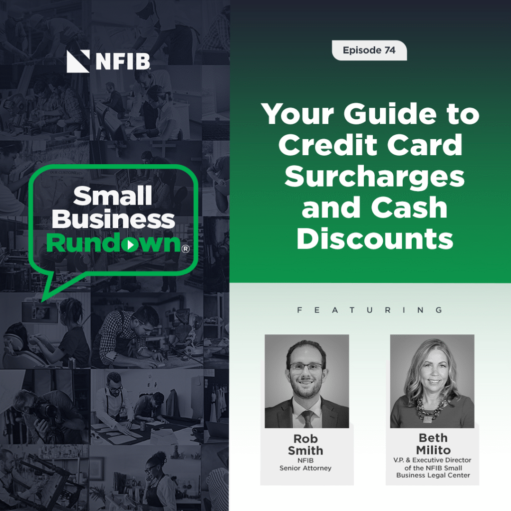 The Small Business Rundown episode 74: Your Guide to Credit Card Surcharges and Cash Discounts, along with the legal guide on credit card surcharges and cash discounts helps small business owners fight growing credit card swipe fees.