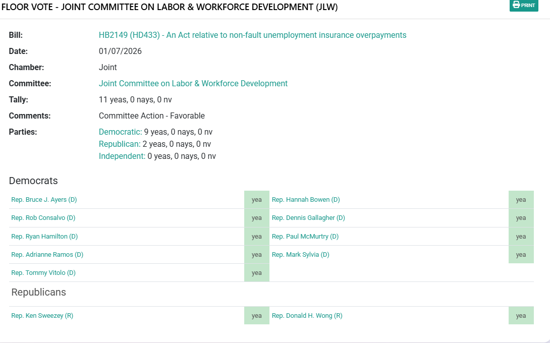 Last week the Joint Committee on Labor and Workforce Development approved two pieces of legislation that could result in the state’s UI crisis becoming worse. The bills, opposed by NFIB at a committee hearing last October, seek to change eligibility for workers with fluctuating work schedules and provide waivers for overpayments.