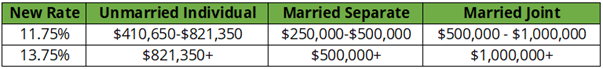 H.732: 1% surtax on income between $200,000-$400,000 for individuals and $400,000-$800,000 for married filers, and a 2% surtax on income above $400,000 for individuals and $800,000 for married filers.