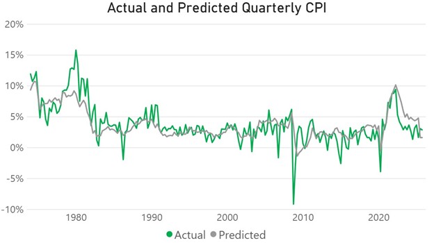 Equation Inflation = 161 + 12 raising + 05 raising 10 R2=57