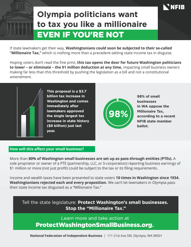 NFIB balloted our members on the proposed “Millionaire Tax.” 98% of respondents oppose this income tax.